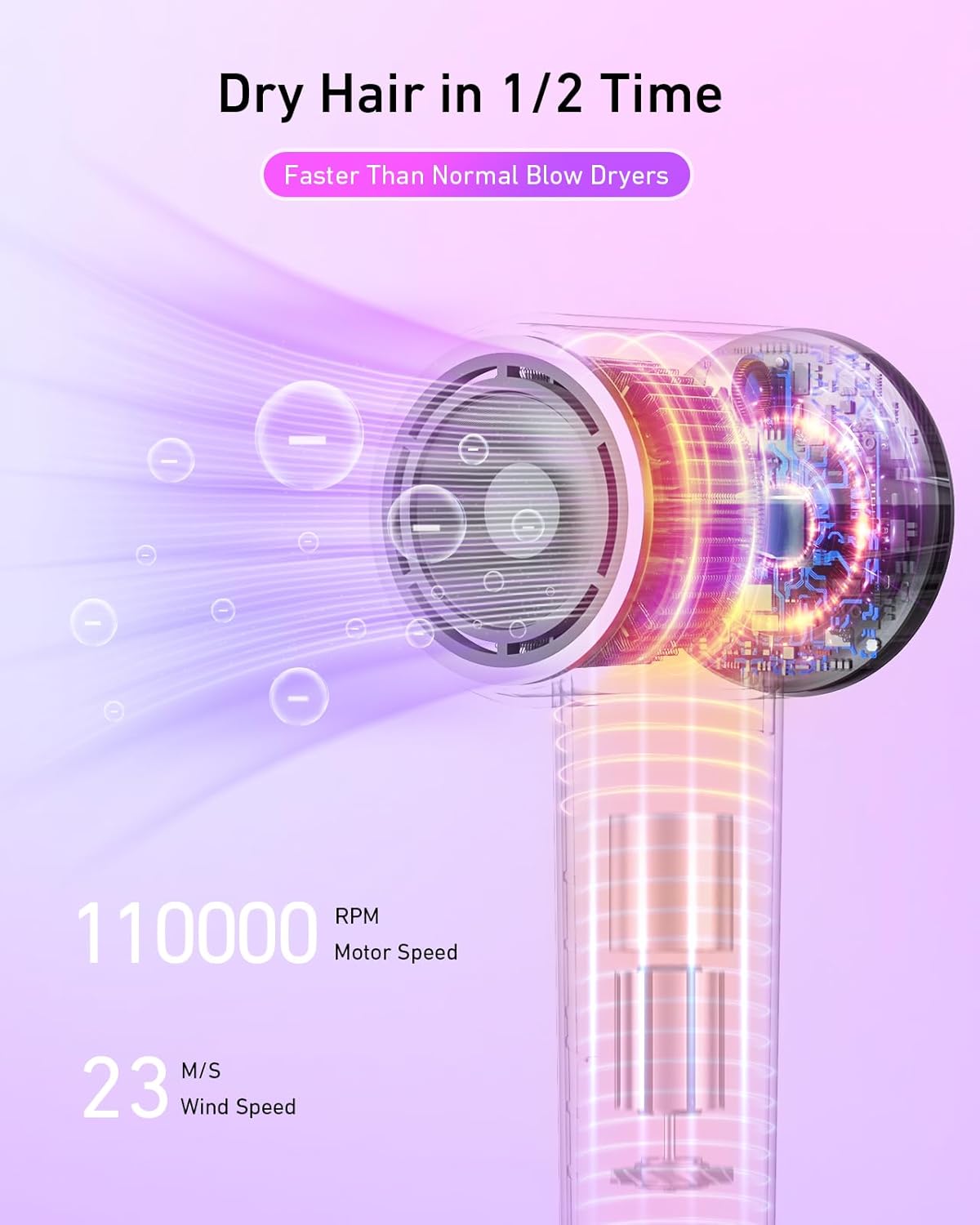 - Efficiency Meets Power: High-speed 110,000 brushless motor; dries hair in 2-5 minutes; reduces morning routine time